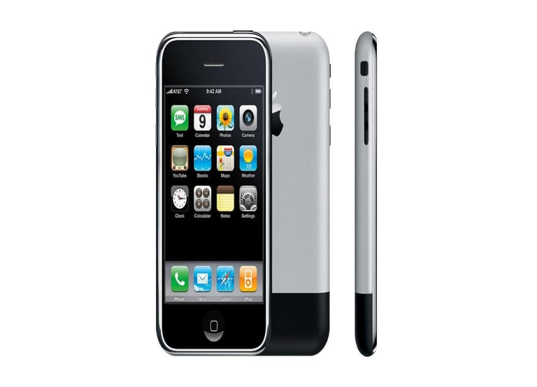 Conectividade e Bateria O iPhone original suportava conectividade de 2G e contava com Wi-fi e Bluetooth 2.0. O dispositivo oferecia uma experiência de navegação na web razoavelmente rápida para a época. A respeito da bateria, o iPhone permitia o uso moderado durante o dia. Ficha técnica O primeiro iPhone era equiparado com um processador da Samsung de 412 MHz e 128 MB de memória RAM. O aparelho estava disponível tanto na versão 4GB quanto 8GB de armazenamento interno. O iPhone apresentava uma câmera traseira de 2 megapixels que permitia capturar fotos de qualidade razoável naquela época. O modelo 4G tinha um preço de lançamento de US$ 499. Já o 8GB custava US$ 599. Na época, esses preços eram considerados altos para um smartphone, porém era reflexo do conjunto de inovações e acesso exclusivo que o usuário poderia ter ao adquirir esse dispositivo. Impacto e legado O primeiro iPhone revolucionou a era da industria de telefonia móvel. Mudou completamente a forma como os seres humanos interagem com as máquinas (aparelhos celulares). Do mesmo modo, o App Store abriu novos caminhos para o desenvolvimento de ecossistema de aplicativos em expansão. Podemos afirmar que o iPhone original definitivamente desempenhou um papel crucial na transformação do mundo digital e integrou de modo universal a Inteligência Artificial. Fontes de pesquisa: Canaltech, Tecmundo e Olhar Digital.